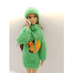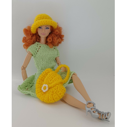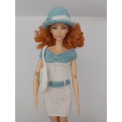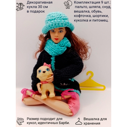 Эксклюзивный мятный вязаный комплект для кукол Барби: комбинезон, шляпка и вешалка | Maryeva
