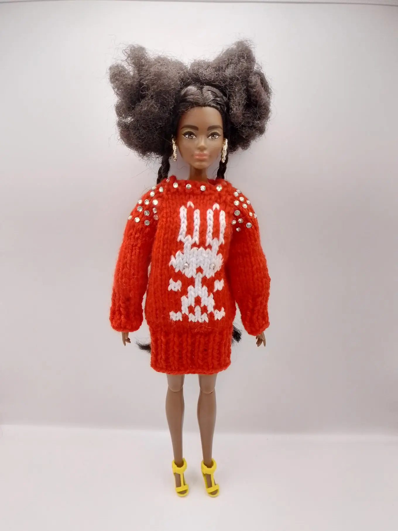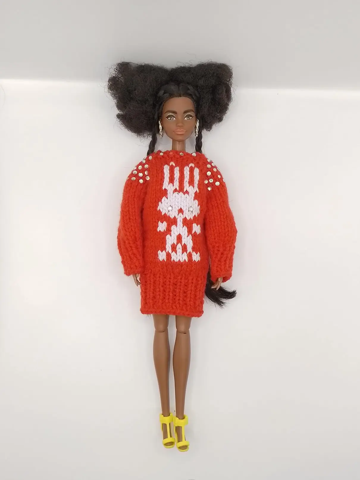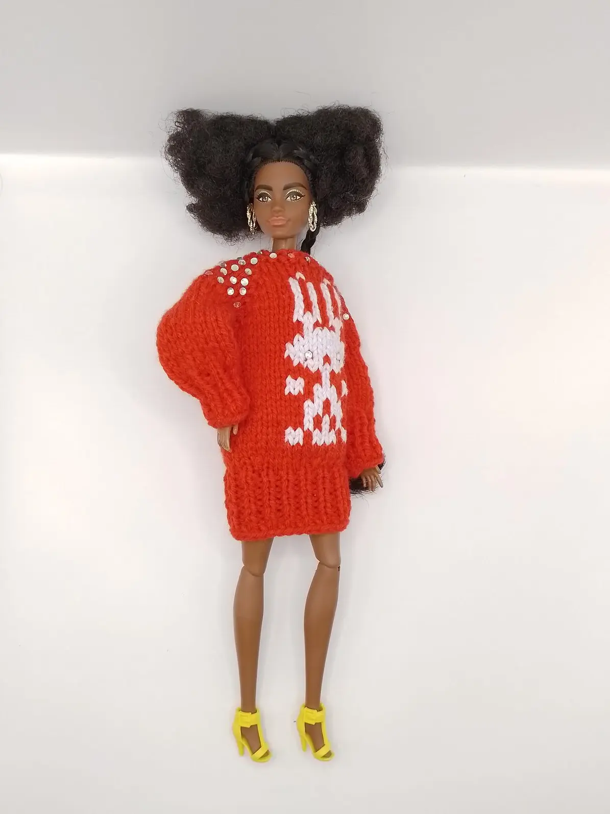 Подарите своей кукле Барби с формами уверенность и стиль! Это яркое платье-свитер создано специально для пухлых кукол (оверсайз), чтобы подчеркнуть их красоту и уникальность.