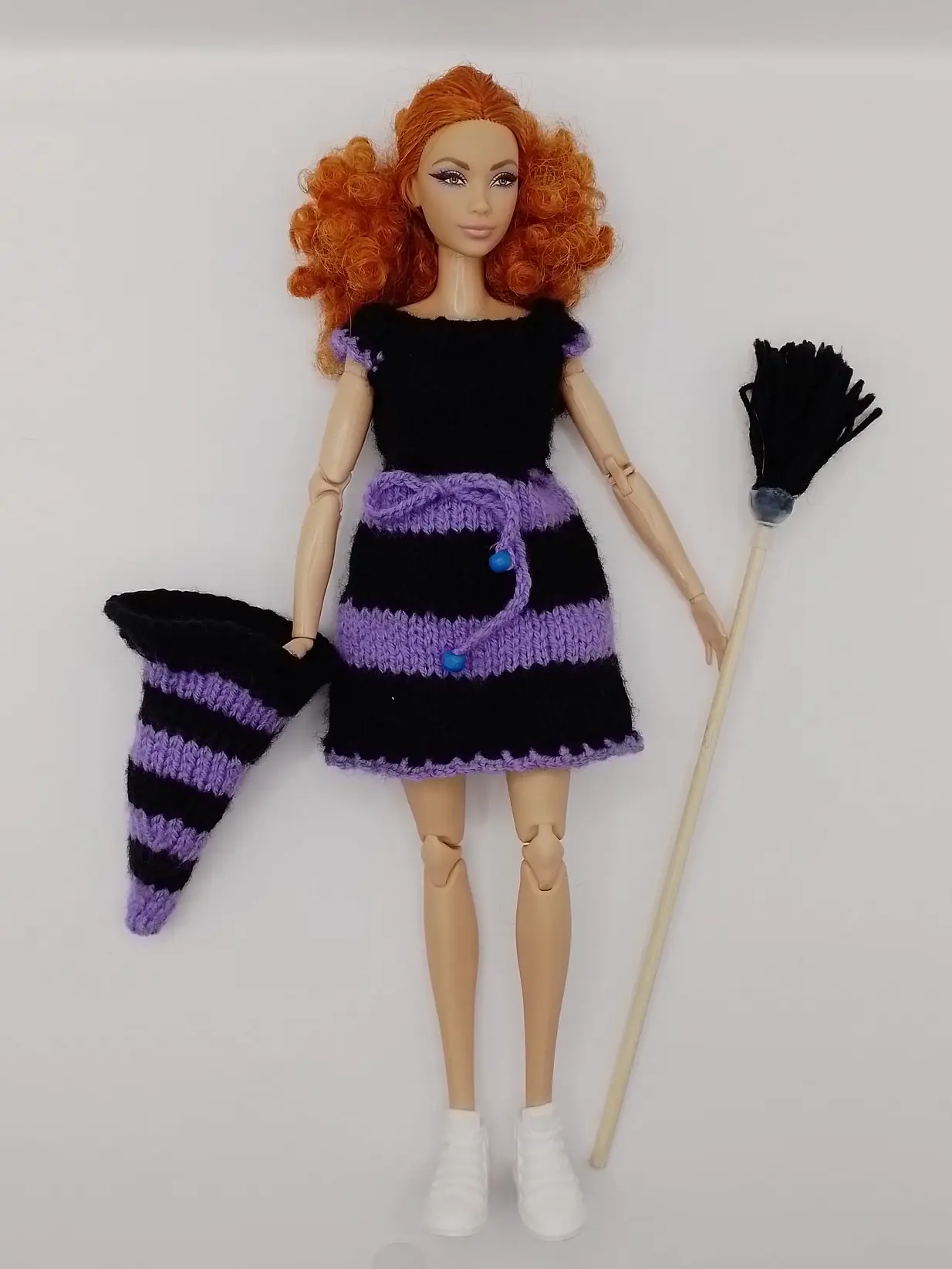 Обзор карнавального костюма «Ведьма» для Барби - полный набор с метлой