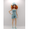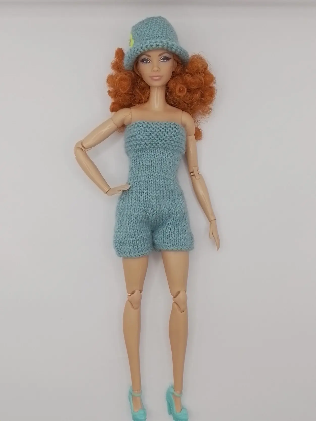 Безупречная деталировка: Уютный комбинезон и изящная шляпка, украшенная рукотворным цветком, подчеркивают филигранную работу мастера.
