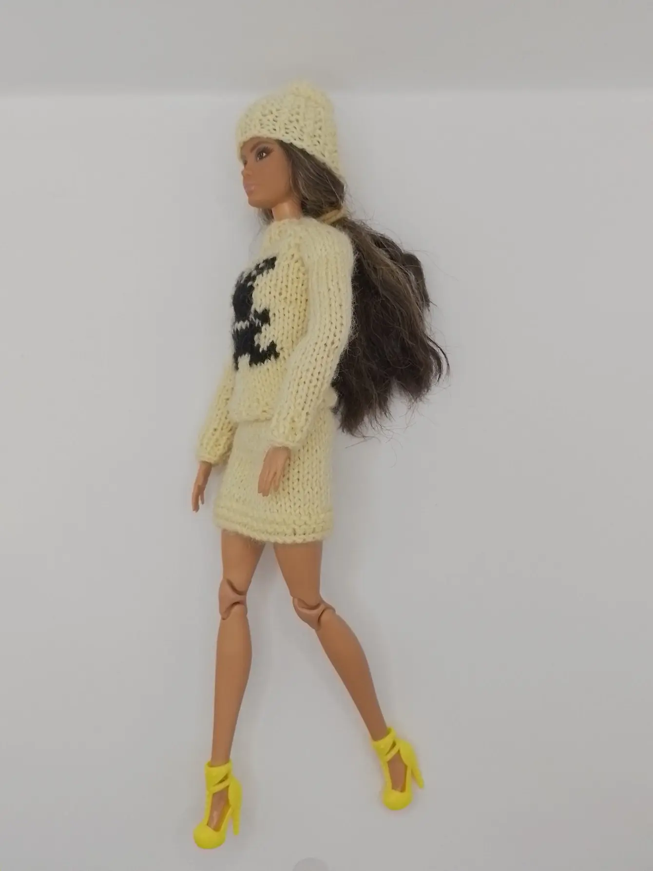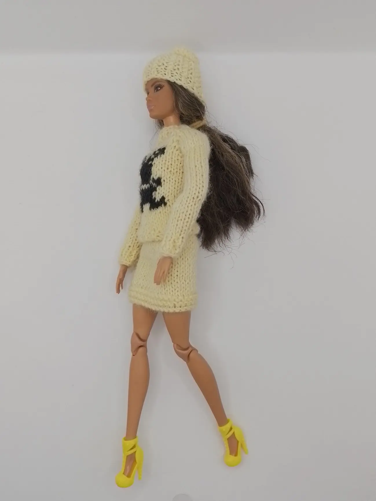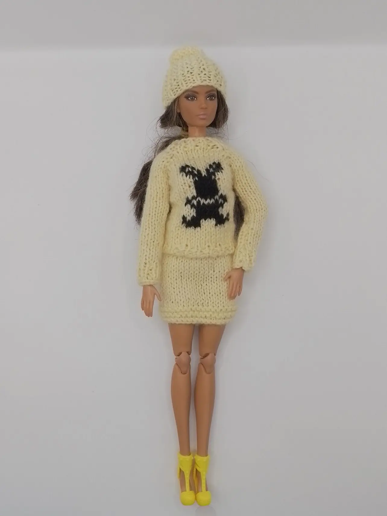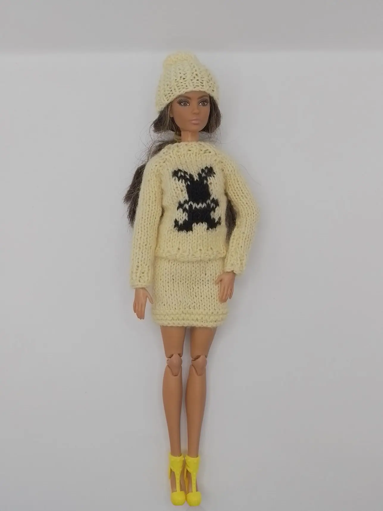 Бренд Maryeva представляет очаровательный комплект для кукол, который не оставит равнодушной ни одну маленькую модницу! Нежный светло-желтый ансамбль с модным принтом "Зайчик" создаст стильный и современный образ для вашей куклы.
