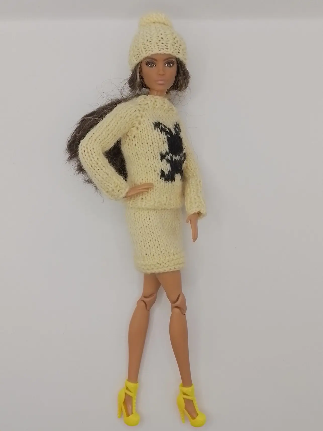 Продуманный дизайн: В комплект входят модный пуловер с уникальным принтом, элегантная юбка-карандаш и стильная шапочка с прорезью для волос — все, что нужно для создания complete образа.