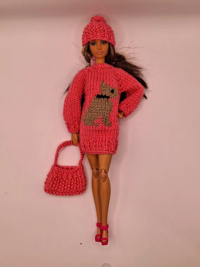 Яркий зимний комплект для Барби с принтом «Собачка» от Maryeva