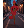Платье-пуловер ярко-розового цвета с принтом "Собачка" оливкового цвета