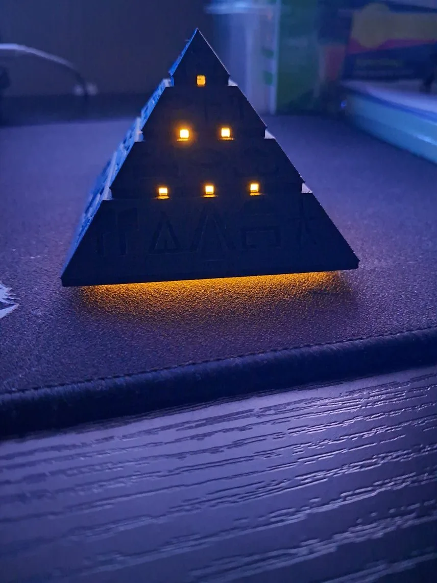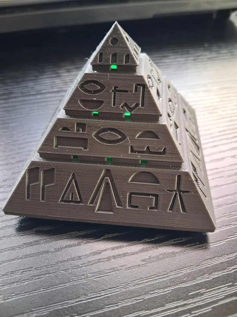 Эта пирамида — прямая отсылка к легендарным «Звёздным Вратам». Установите внутрь светодиодную свечу или отрезок LED-ленты — и она превратится в портал света и энергии, точь-в-точь как в кадре из фильма.