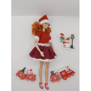 Новогодний комплект для Барби «Внучка Санты»: платье и колпак ручной работы