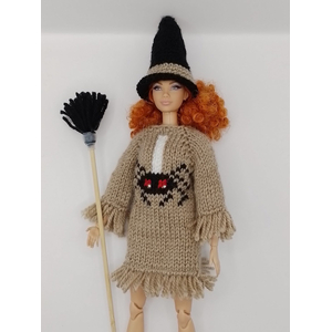 Карнавальный костюм «Ведьма в платье с принтом "Паук"» для Барби на Хеллоуин | Набор с метлой и шляпой+ вешалка